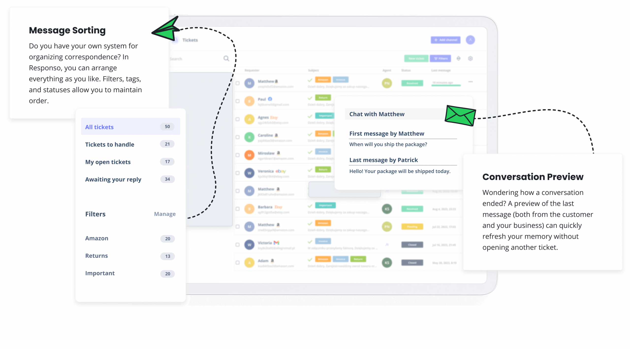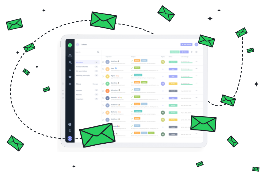Responso works with many popular solutions for e-commerce, including marketplaces, e-shop platforms, email inboxes, communicators, and social media.