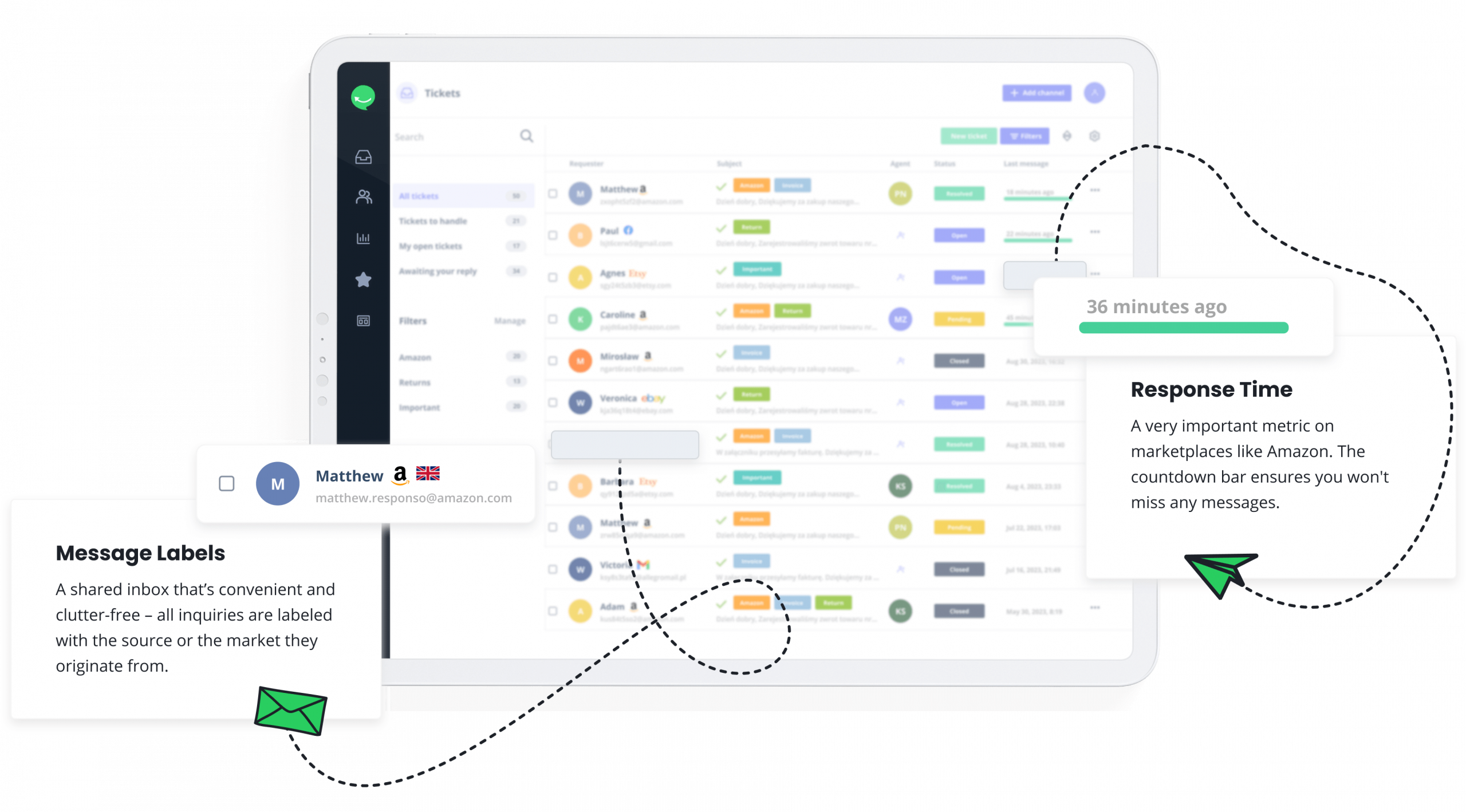 Automation is fundamental in optimizing the work of an e-store, so it’s time to introduce it into customer service as well. How does this work? Let’s say you want an employee named Peter to be assigned to all messages coming from one of your Amazon accounts.