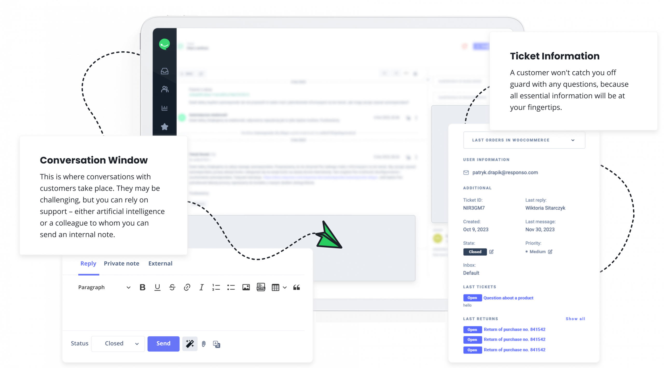 Creating roles and assigning permissions, distributing tasks related to tickets, adding custom filters and footers, creating message templates, translations, text editing… there are many Responso features we haven’t even mentioned yet.