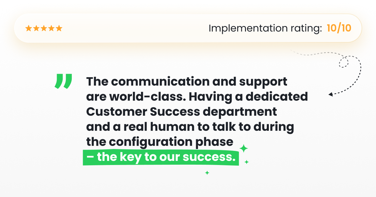 The communication and support are world-class. Having a dedicated Customer Success department and a real human to talk to during the configuration phase – the key to our success.