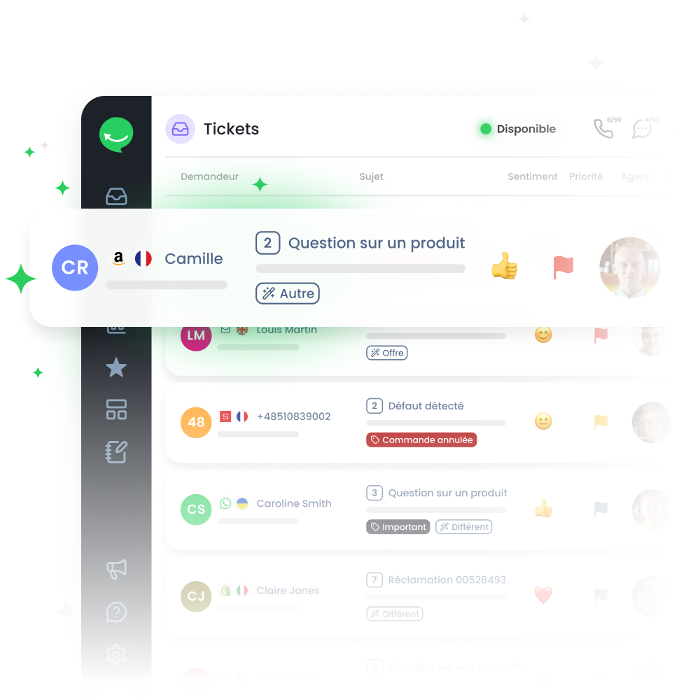 Centralisez tous vos marketplaces, rationalisez la communication et automatisez les processus clés sans perdre la touche humaine. Offrez un support rapide et cohérent qui renforce la confiance, améliore les évaluations et stimule la croissance à long terme sur Amazon avec Responso.