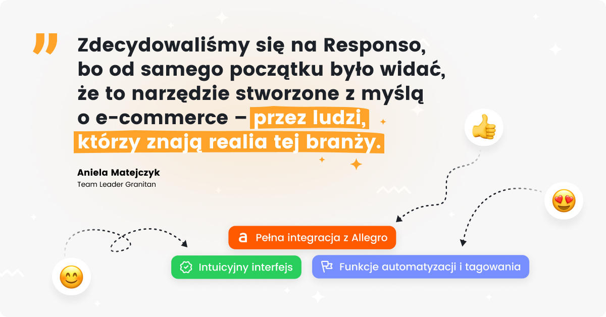 W Granitanie korzystamy z funkcji opartych na sztucznej inteligencji w Responso – szczególnie z analizy kontekstu i sentymentu, które realnie pomagają w organizacji pracy zespołu i szybszym reagowaniu na bardziej wrażliwe sytuacje.