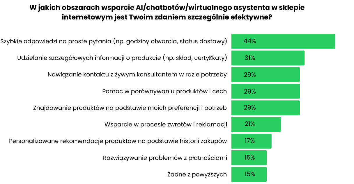 Raport potwierdza, że sztuczna inteligencja z impetem weszła do e-commerce: ponad połowa badanych (53%) korzysta z narzędzi AI w procesie zakupowym.