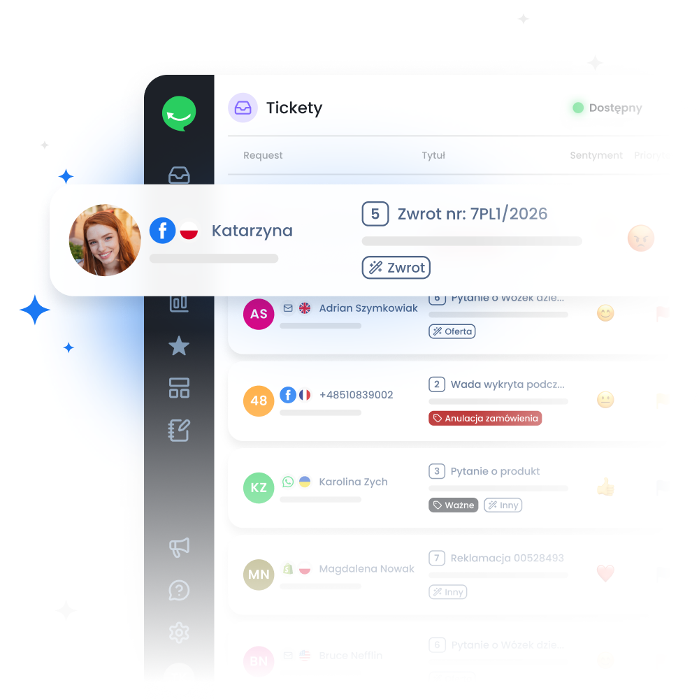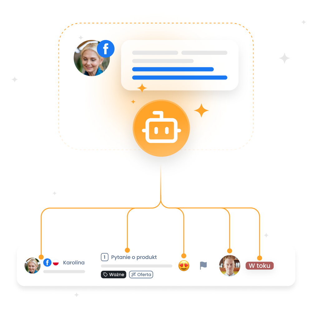 Efektywna sprzedaż wielokanałowa nie musi oznaczać dziesiątek otwartych kart w przeglądarce. Połączenie Facebooka z Responso sprawia, że wiadomości Messengera stają się częścią Twojej skrzynki odbiorczej, do której możesz również dorzucić integracje z marketplace’ami, platformami e‑commerce oraz inne komunikatory. Mając całą komunikację e-commerce w jednym, przejrzystym panelu Responso, zachowujesz pełną koncentrację i masz pewność, że nie przegapisz żadnej wiadomości.