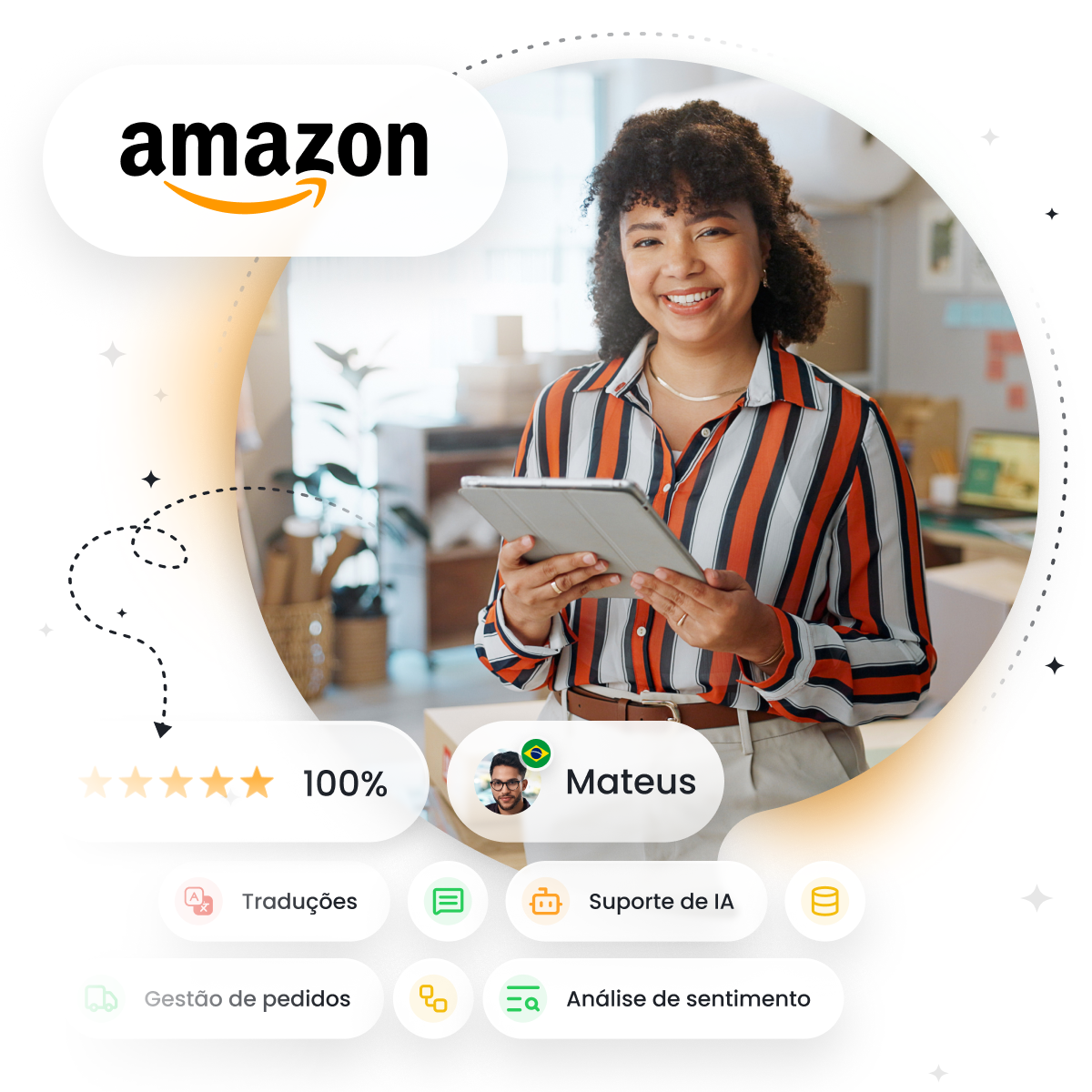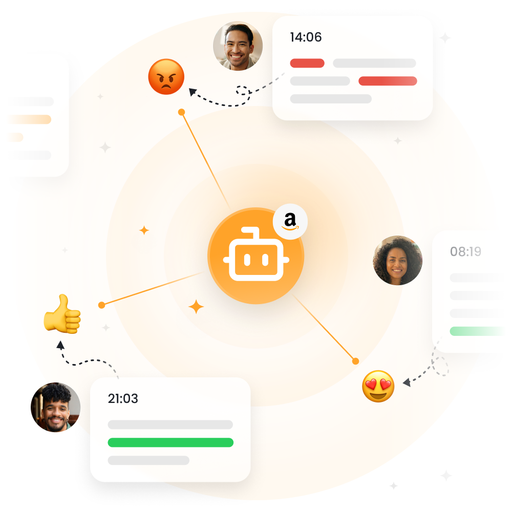 Centralize todas as suas operações na Amazon, otimize a comunicação e automatize processos-chave sem perder o toque humano. Ofereça um suporte rápido e consistente que fortalece a confiança, melhora suas avaliações e impulsiona o crescimento de longo prazo na Amazon com o Responso.